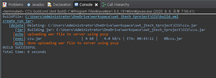 이렇게해서 다시 ANT Build 를 진행하면 (단축키를 누르든 마우스를 써서 하든) 하면