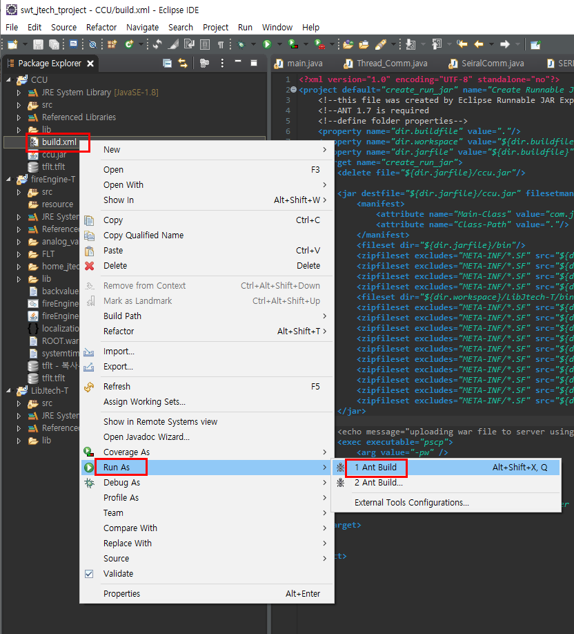 요로케 build.xml 파일에서 마우스 우측클릭하여 하는 방법도 있다.