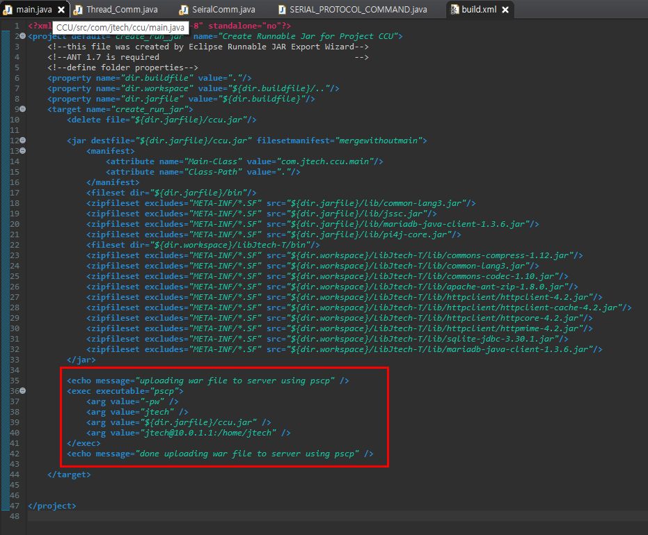 이렇게하면 JAR 파일이 만들어진후 PSCP 명령어를 수행하여 해당 장비에 바로 복사를 시킬수가 있다.
