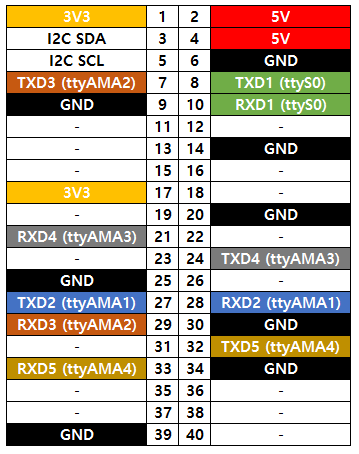 위에 사진을 보면 총 Pi 4에는 6개의 UART가 있으며
