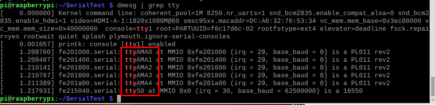 ttyAMA0 ~ ttyAMA4 및 ttyS0